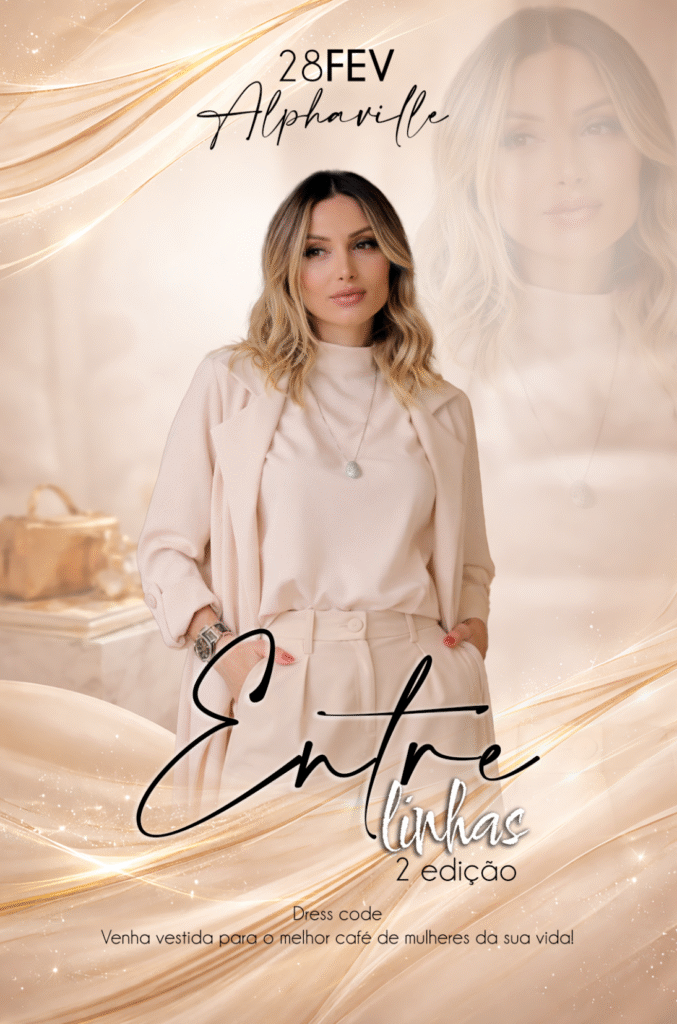 Entre Linhas é uma imersão presencial para mulheres que sentem que cresceram por dentro, mas ainda não sustentam isso por fora. Não é um evento sobre moda, estética ou aparência. É sobre consciência, posicionamento e identidade.